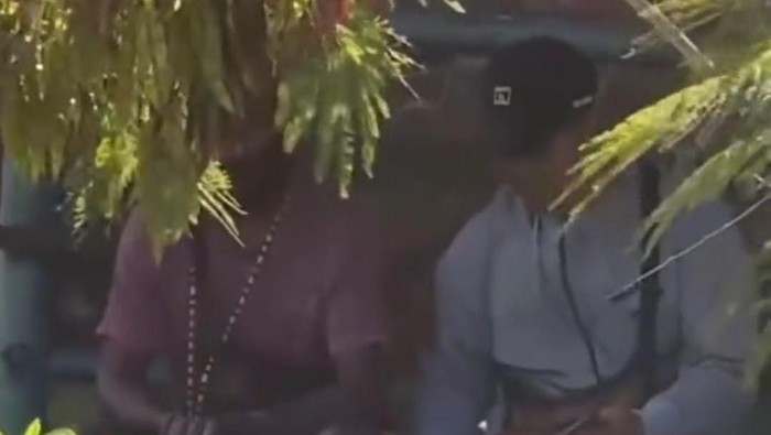 Dalam video beredar, tampak seorang pria mengenakan topi berwarna hitam mengambil kantong plastik. Dia kemudian duduk di samping pria brewok yang mengenakan kalung dan kaos warna merah muda.