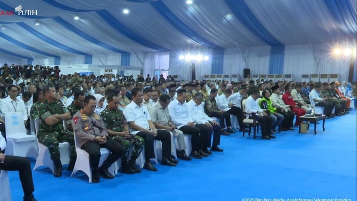 Acara digelar di Pesona Kahuripan 10, Cileungsi, Bogor, Jawa Barat, Senin (29/9/2025). Sejumlah pejabat yang hadir dalah Menteri Perumahan dan Kawasan Permukiman (PKP) Maruarar Sirait, Menko Infrastruktur dan Pembangunan Kewilayahan Agus Harimurti Yudhoyono (AHY), Menteri Keuangan Purbaya Yudhi Sadewa, Menteri Dalam Negeri Tito Karnavian, Panglima TNI Jenderal Agus Subiyanto, hingga Kapolri Jenderal Listyo Sigit Prabowo.